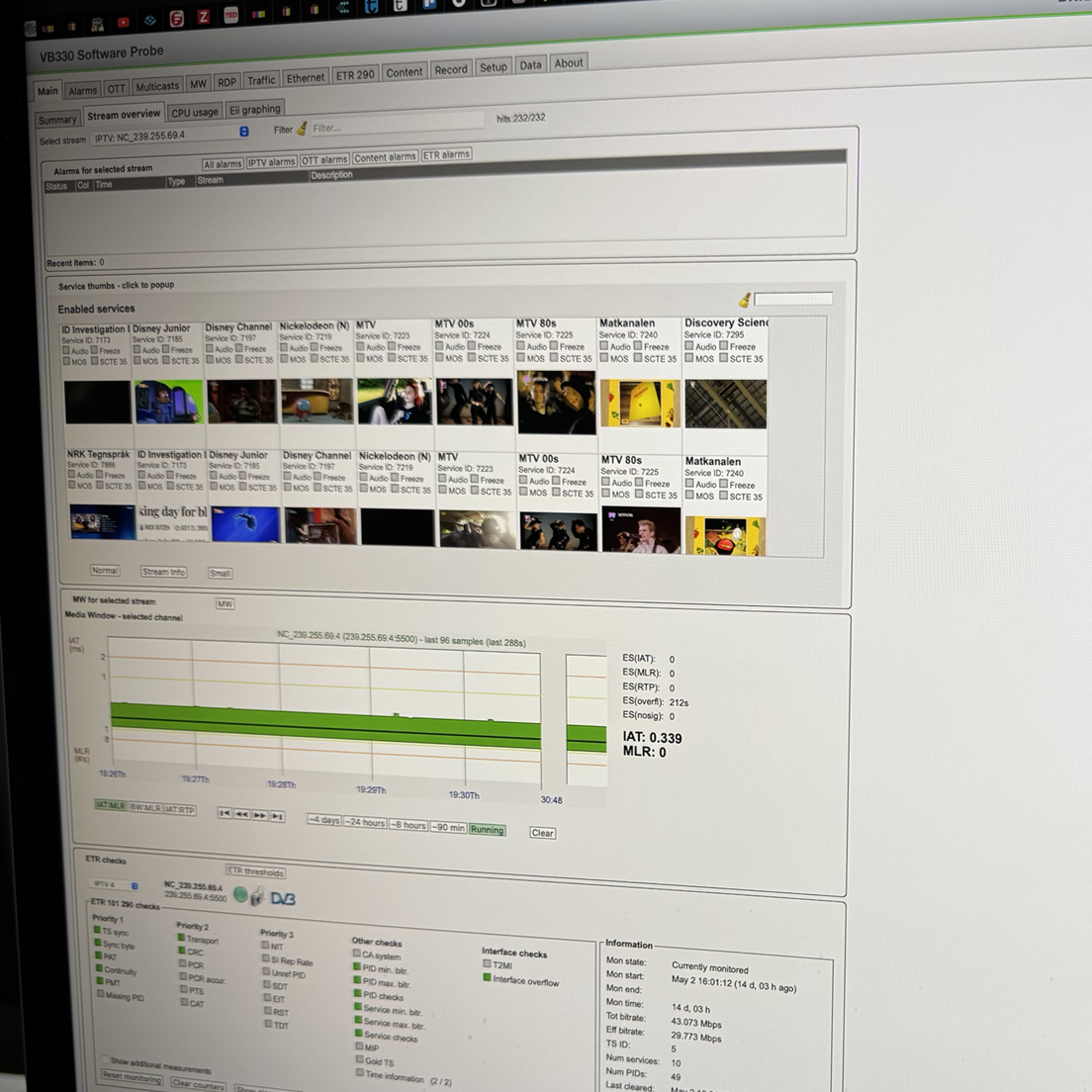 VB330 egészét úgy tervezték, hogy segítsen a média- és szélessávú szolgáltatóknak kivételes szolgáltatásminőséget (QoS) és élményminőséget (QoE) biztosítani, és képes az IP multicast, a videó OTT/ABR streaming, a video-on-demand unicast és az Ethernet trunk microburst-ök megfigyelésére, valamint PCAP rögzítésre, L2TP kicsomagolásra és megfigyelésre, valamint általános forgalmi protokollvizsgálatra. E hálózattípusok és a jelformátumok teljes skáláján számos mérőszámot és betekintést tartalmaz, többek között – de nem kizárólagosan – OTT/ABR QoS szállítás és manifesztek, Freeze Frame és jelveszteség, hangszint, QoE MOS pontszám, ETSI TR 101 290 Gold TS referenciával, SCTE35/104 reklámbeillesztés, IP jitter, csomagvesztés, OTT profil igazítás, SRT és zárt felirat ellenőrzés. E funkciók kiterjedt jellege azt jelenti, hogy bár a szonda fő kezelőfelülete intuitívan használható, a navigáció lassabb lehet, mivel a fő kezelőfelület egy sor lapon és kattintással elérhető menün alapul. A VB330 a hálózat szakértői elemzését végző mérnökök számára ideális, az azonnali problémák elhárítására törekvő első vonalbeli mérnökök számára kevésbé az.